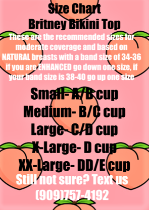 ALL bikini tops and bottoms must be HAND WASHED in COLD water using just a few drops of MILD BLUE DISH SOAP, do not soak, do not wring/twist, lay flat on a towel to dry out of sunlight.