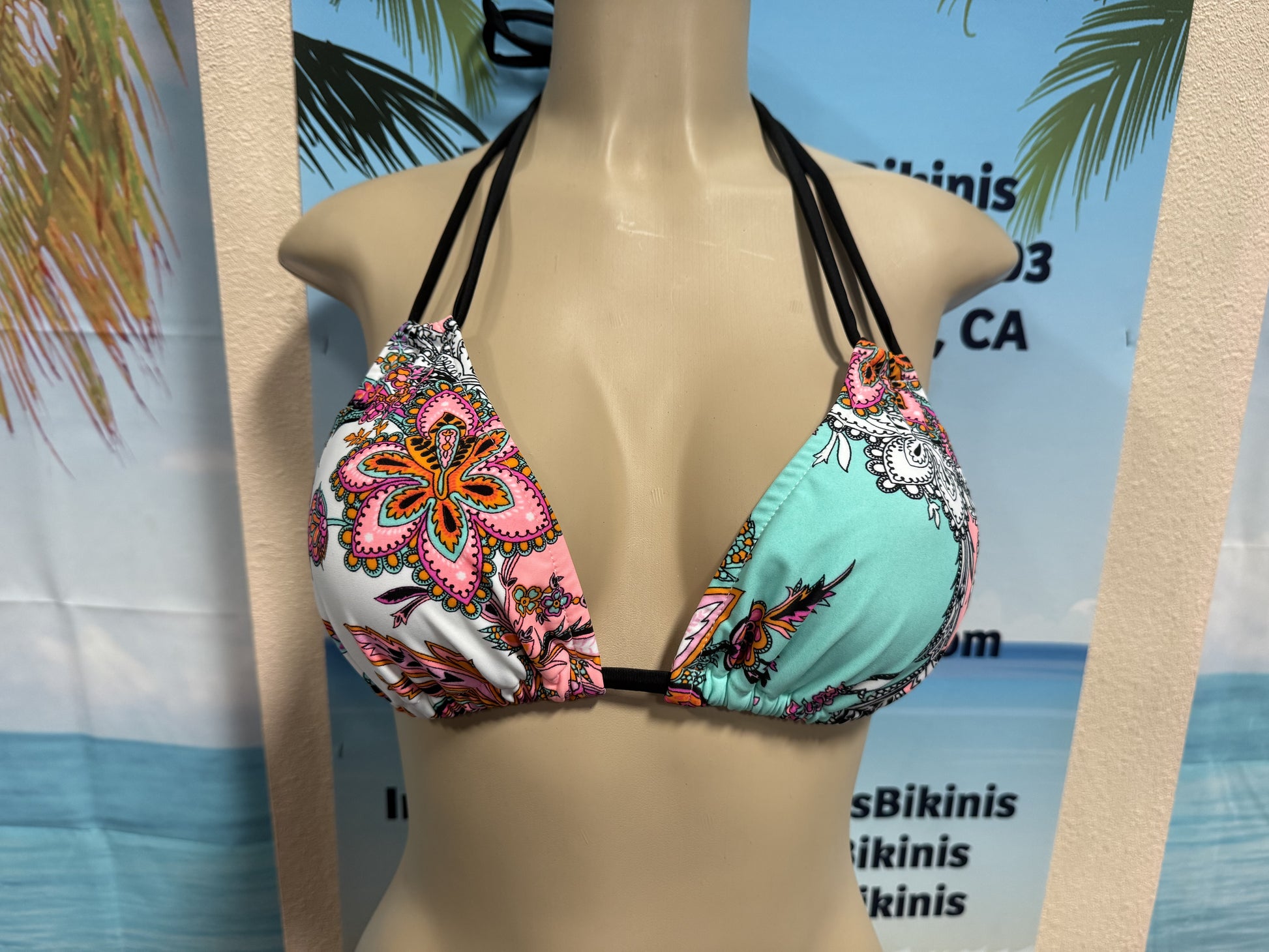 Layla Triangle Top in Peachy Mint Paisley with black ties