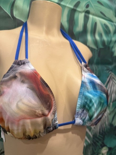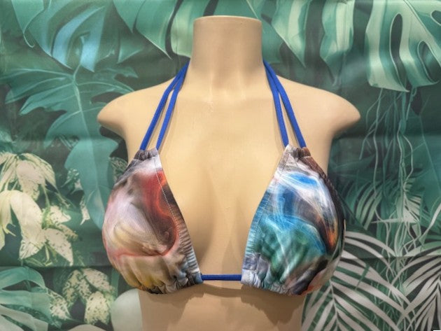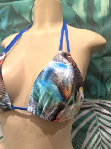 Layla Triangle Top in multi color Smoke print with Sapphire Blue ties