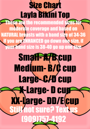 ALL bikini tops and bottoms must be HAND WASHED in COLD water using just a few drops of MILD BLUE DISH SOAP, do not soak, do not wring/twist, lay flat on a towel to dry out of sunlight.