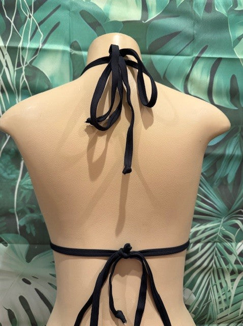 This top ties at behind the neck and back, dont like tops that tie at the neck? We can criss cross the straps when you add it from the Alterations category, or try one of our amazing Necksavers!
