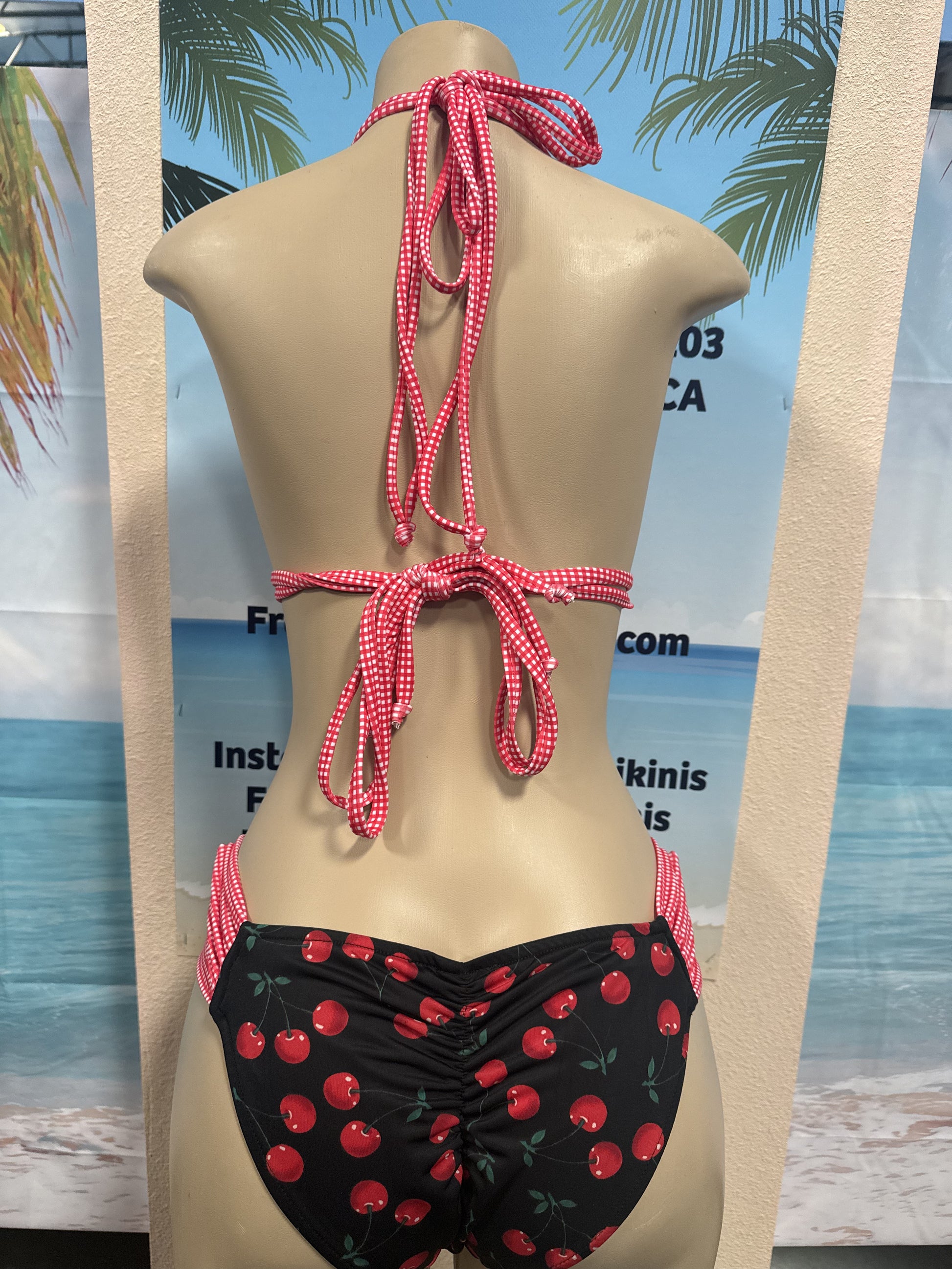 Paradise bottoms in Black Cherry with tiny red and white gingham sides.